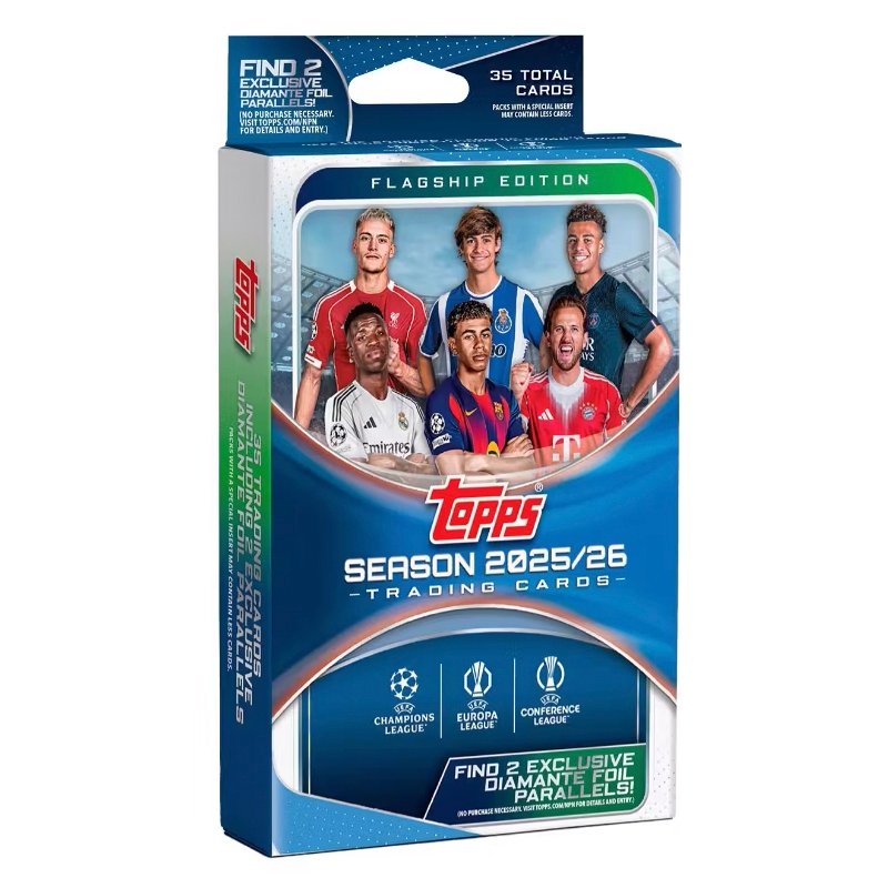 The Topps Flagship UCC 2025‑26 Hanger Box It is a collector's box specially designed for fans of hobby of football cards, focused on European club competitions (UEFA Club CompetitionsThis version hanger offers a An exciting mix of sideways, base cards, and the possibility of value hits without the fixed structure of a traditional Hobby Box.