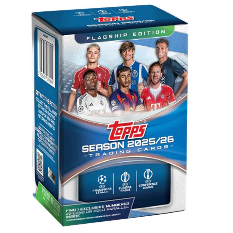 La Value Box 2025‑26 Topps UCC Flagship es una opción accesible para coleccionistas que quieren disfrutar abriendo packs de la serie Flagship centrada en las competiciones de clubes europeos (Champions League, Europa League y Conference League). Con licencias oficiales y diseño clásico de Topps, este formato ofrece múltiples sobres que aumentan las posibilidades de encontrar paralelos brillantes, versiones numeradas y cartas deseables.
